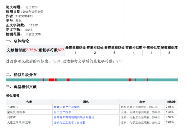 图为2012级某学生的部分查重报告截图