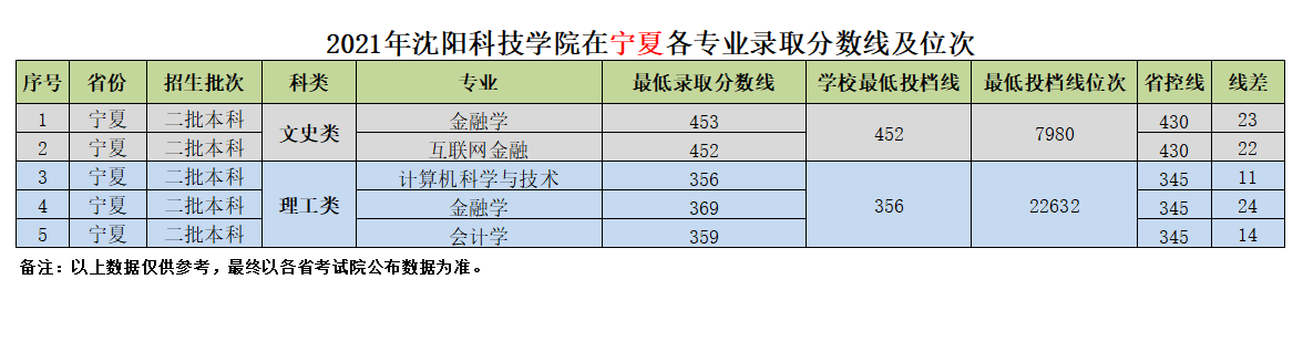 我校在宁夏回族自治区近三年各专业录取分数线及位次