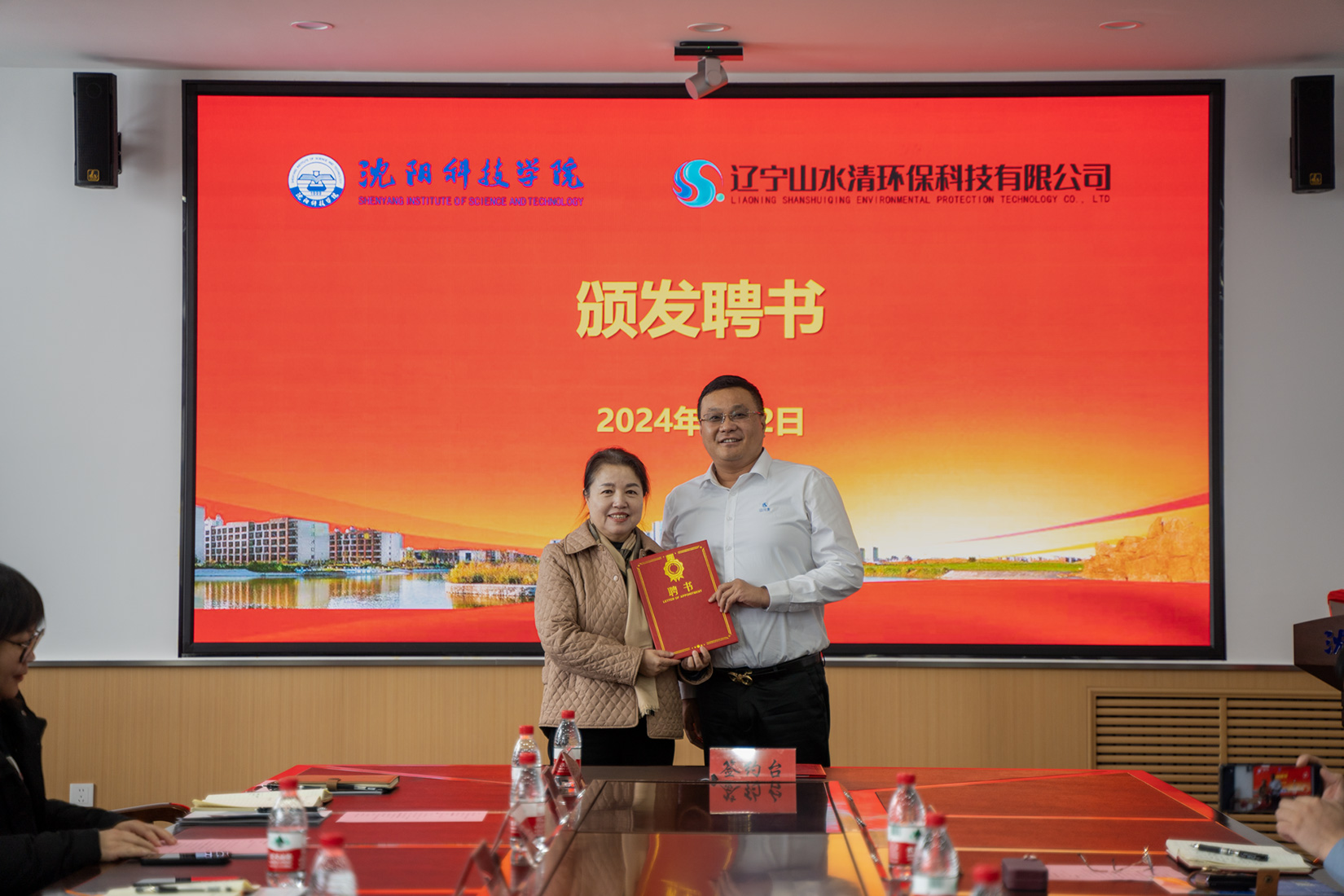 随后,学校党委副书记、校长孙玉红与辽宁山水清环保科技有限公司董事长兼总经理郭洪君共同签署校企合作协议,并为郭洪君、李大铭颁发letou米兰首页客座教授聘书。副校长王鸿鹏为应用型人才培养基地、就业育人实践基地揭牌。