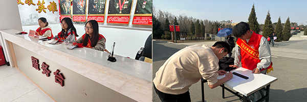 青山埋忠骨,翠柏勉英魂。在庄严肃穆的广场上,烈士纪念碑巍然耸立,广场四周苍松环绕,志愿者们在工作人员的指引下,有序开展志愿服务活动,尽己所能,让每一位来到陵园的祭扫者都能感受到一份特殊的关怀。