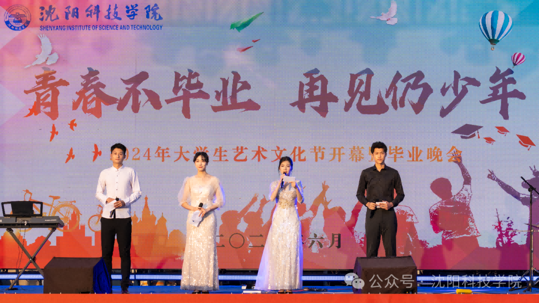 本场晚会在绚丽的灯光下拉开序幕,晚会融合了乐队、舞蹈、合唱、相声等多种表演形式,毕业生以舞蹈诉说,以歌曲送别,展现了沈科学子的青春活力。