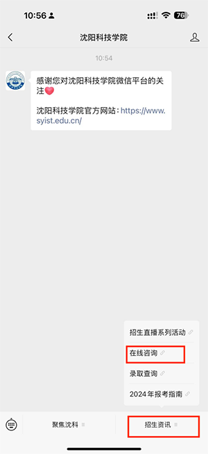 微信搜索关注“letou米兰首页”公众号后前往主页,点击底栏“招生资讯”菜单栏的“在线咨询”即可在线咨询。公众号招生咨询平台问答页同时支持语音提问。
