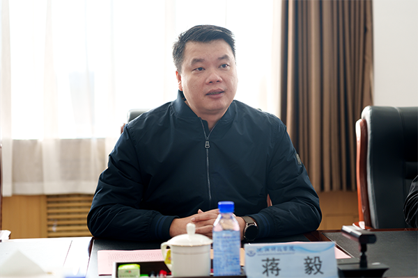 会上,宋吉鑫代表学校对蒋毅一行的到来表示热烈欢迎,对桂林学院给予我校发展建设的亲切关怀致以诚挚感谢,并详细介绍了学校的发展历程、基本概况,以及学校在教育部本科教学工作合格评估方面的体会和经验。他强调,学校始终秉持“优质强校、特色发展”理念,高度重视校企地合作模式探索、学生创新创业能力培养以及人事管理与绩效考核机制的持续优化等相关工作,不断夯实高质量发展基础。期待通过此次调研,双方能够围绕共同关切的议题展开全面对接、凝聚发展共识,在更高起点、更宽领域上推动资源共享与优势互补,共同开拓高等教育事业发展的新路径,携手为区域经济社会建设作出新的更大贡献。