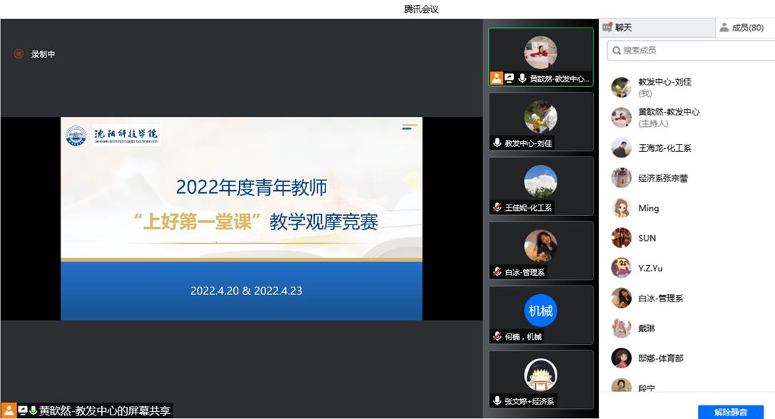 为了进一步锤炼我校青年教师的教学基本功,为青年教师提供交流展示的平台,近日我校举办了“沈科评好我做主”系列活动之青年教师“上好第一堂课”教学观摩竞赛。受疫情影响,本次竞赛以“线上”形式开展,分为系部选拔推荐和校内决赛两个阶段,来自全校各系部的20名青年教师参加了校级决赛,入职不满3年的青年教师在线进行了观摩学习。