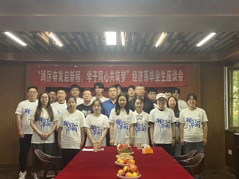 校领导王鸿鹏认真听取了优秀毕业生的发言,充分肯定了经济系学子在校期间的成长与收获,并就教育教学、校园文化、后勤服务等方面与同学们进行诚挚的交流,他勉励毕业生们一要怀揣感恩之心,感恩母校教会我们“博学笃行、种德修身”的校训精神,不忘学校、老师们对我们的殷切期望,做睿智而富有激情的人,胸怀大志而脚踏实地的人,富有责任并勇挑重担的人;二要懂得奋斗进取,勇于拼搏,不仅仅要学好课本知识,更要把学到的知识内化为个人的能力素质,应立志做有理想、敢担当、能吃苦、肯奋斗的新时代好青年,始终发扬奉献精神,让青春在奉献中发光发亮;三要立鸿鹄志,树立好人生目标,做好人生规划,步入社会后要干一行、爱一行、精一行,要信念如磐、意志如铁、勇往直前。