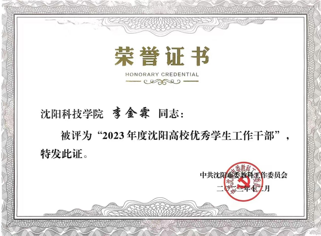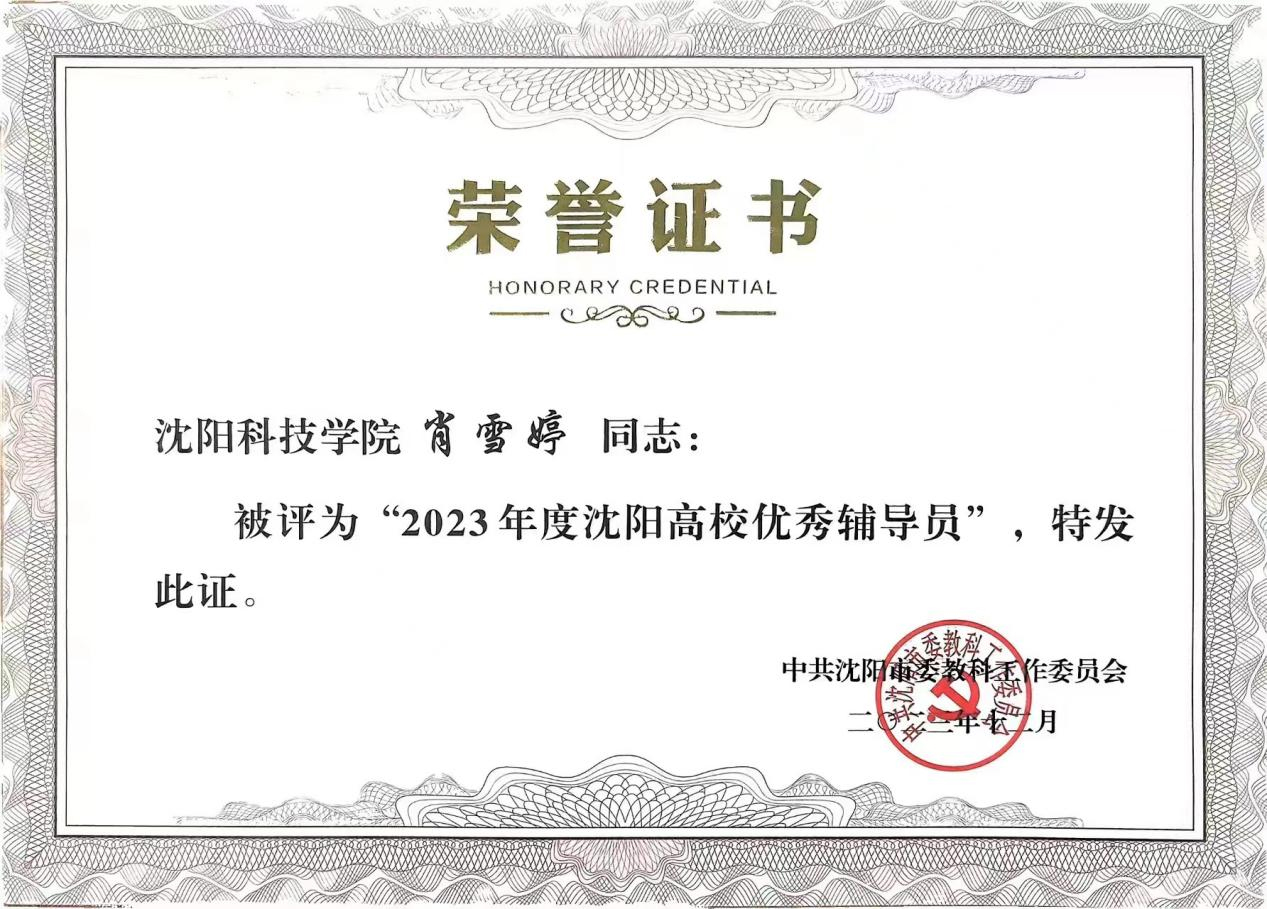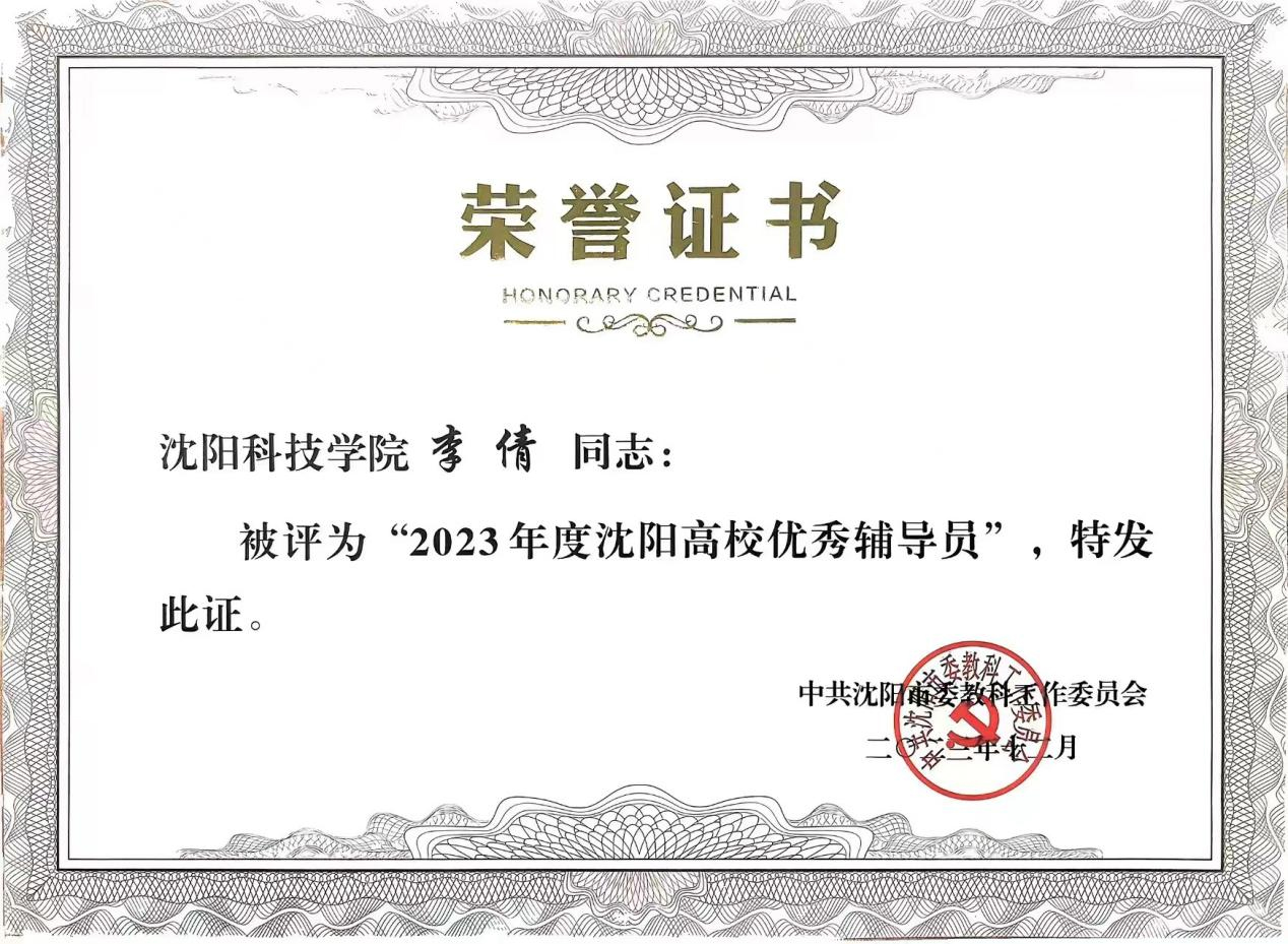 近日,中共沈阳市委教科工作委员会组织开展了“2023年度沈阳高校优秀辅导员、优秀米兰体育在线投注网站官网干部”评审工作。经个人申报、系部推荐、校内评审、学校推荐、专家审核,我校辅导员王爽、田野、杨阳、李倩、黎明东、蒋明儒、肖雪婷荣获“2023年度沈阳高校优秀辅导员”荣誉称号。我校宋和发、施芳芳、李金霖荣获“2023年度沈阳高校优秀米兰体育在线投注网站官网干部”荣誉称号。