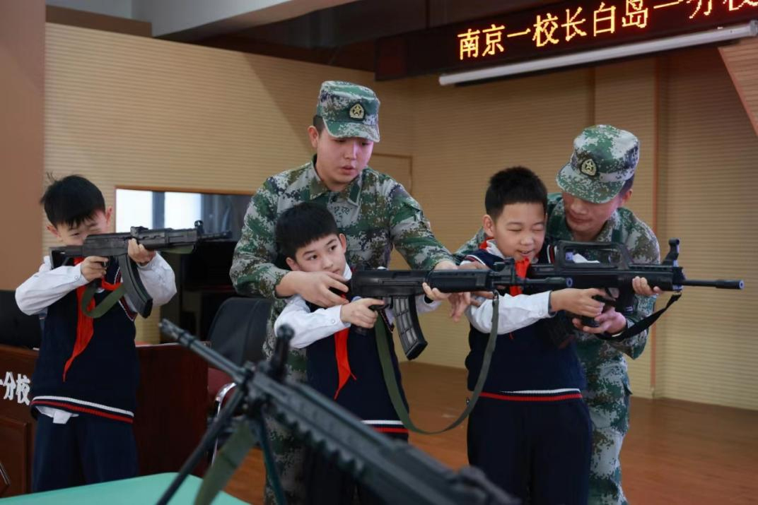 本次讲座以“明国防之理 怀报国之志”为题,从理论知识解读与实践体验两个方面开展。讲座上,魏凡林生动形象地讲述了国防的内涵及重要性、我国武装力量的总体情况等,并结合九·一八事变和“我们为什么要进行抗美援朝战争”以及陈红军等烈士的先进事迹进行深入讲解,并表示青少年是国家的未来和民族的希望,应该从小树立正确的国防观念,增强国家安全意识。在实践体验环节,我校精心准备了一系列实物仿真模型,现场邀请了多位青少年上前操作体验。整场讲座,南京一校的同学们表现出了极高的兴趣和热情,纷纷举手发言表达自己的想法,他们的发言虽然稚嫩,但充满了对祖国的热爱和对未来的憧憬。