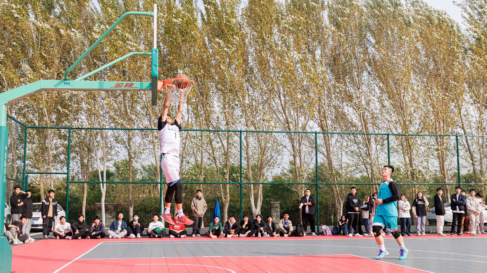 为庆祝新中国成立75周年,弘扬中华体育精神,丰富学生课余生活,展现新时代青年朝气蓬勃的精神风貌,近日,我校第三届“迎新杯”校园男子篮球赛在南校区篮球场震撼开幕。党委副书记、副校长高洪震莅临比赛现场,为篮球赛开球。我校7支队伍,共49名篮球健将参赛,历时8天的激烈角逐,参赛队员们迎“篮”而上,奋力拼搏,为观众呈现了一场场视觉与激情的双重盛宴。
