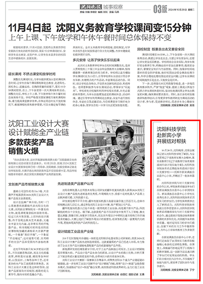 10月29日,《沈阳晚报》03版报道我校赴抚顺市新宾满族自治县中心小学开展结对帮扶活动,报道全文如下: