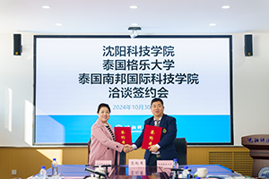10月30日上午,泰国格乐大学管理委员会副主席李黎光、南邦国际科技学院校长助理冯秋野一行访问我校,就中、泰双方院校开展国际交流合作进行了深入的探讨并签署合作备忘录,学校党委副书记、校长孙玉红,副校长王鸿鹏会见来宾,党政办公室、教务处、国际合作与交流中心相关负责同志陪同会见。